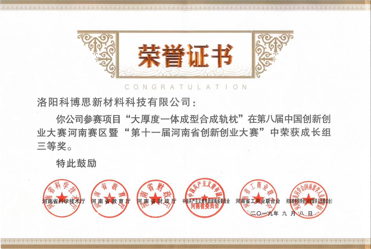 科博思新材榮獲‘第八屆中國創(chuàng )新創(chuàng )業(yè)大賽河南賽區’三等獎