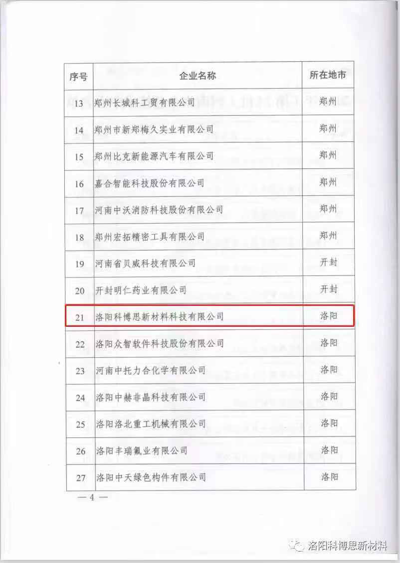 洛陽(yáng)科博思新材料科技有限公司獲批河南省企業(yè)技術(shù)中心認定