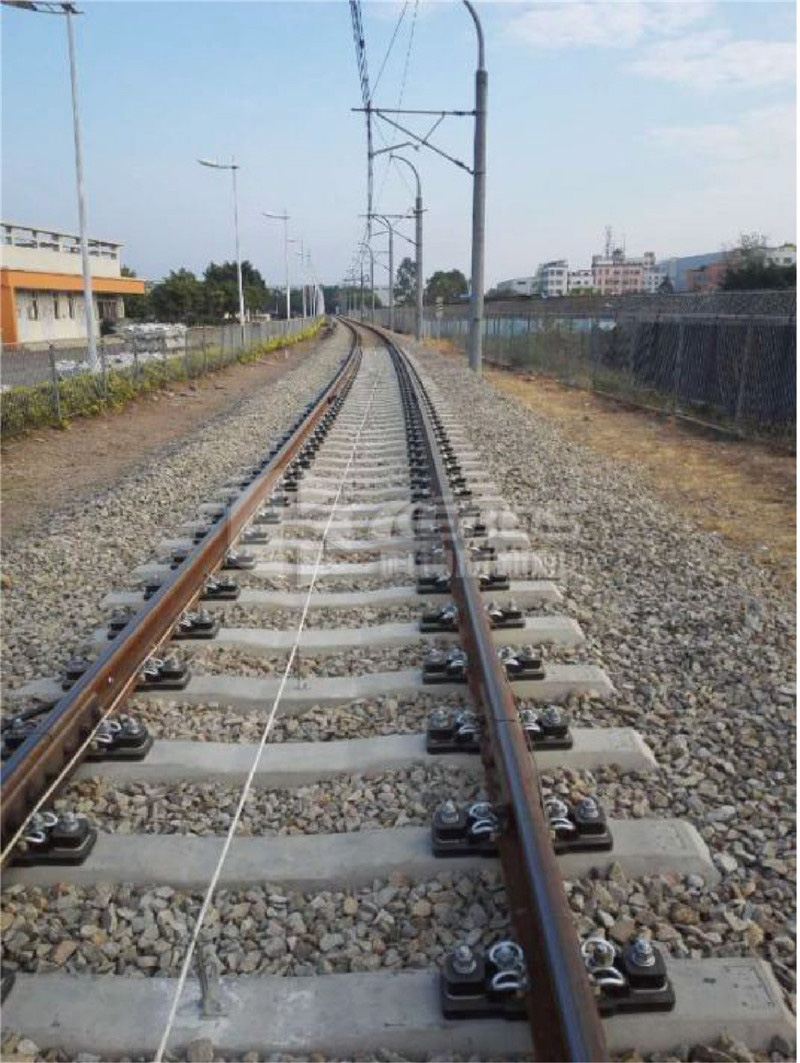 預埋式雙層非線(xiàn)性減振扣件主要由預埋鐵座、中間橡膠墊板、鐵墊板、軌下橡膠墊板以及彈條系統等組 成,屬于中等減振扣件范疇,具有優(yōu)異的動(dòng)態(tài)減振性能,相較于普通彈性分開(kāi)式扣件減振達8dB以上, 可廣泛地應用于城市軌道交通線(xiàn)路中。